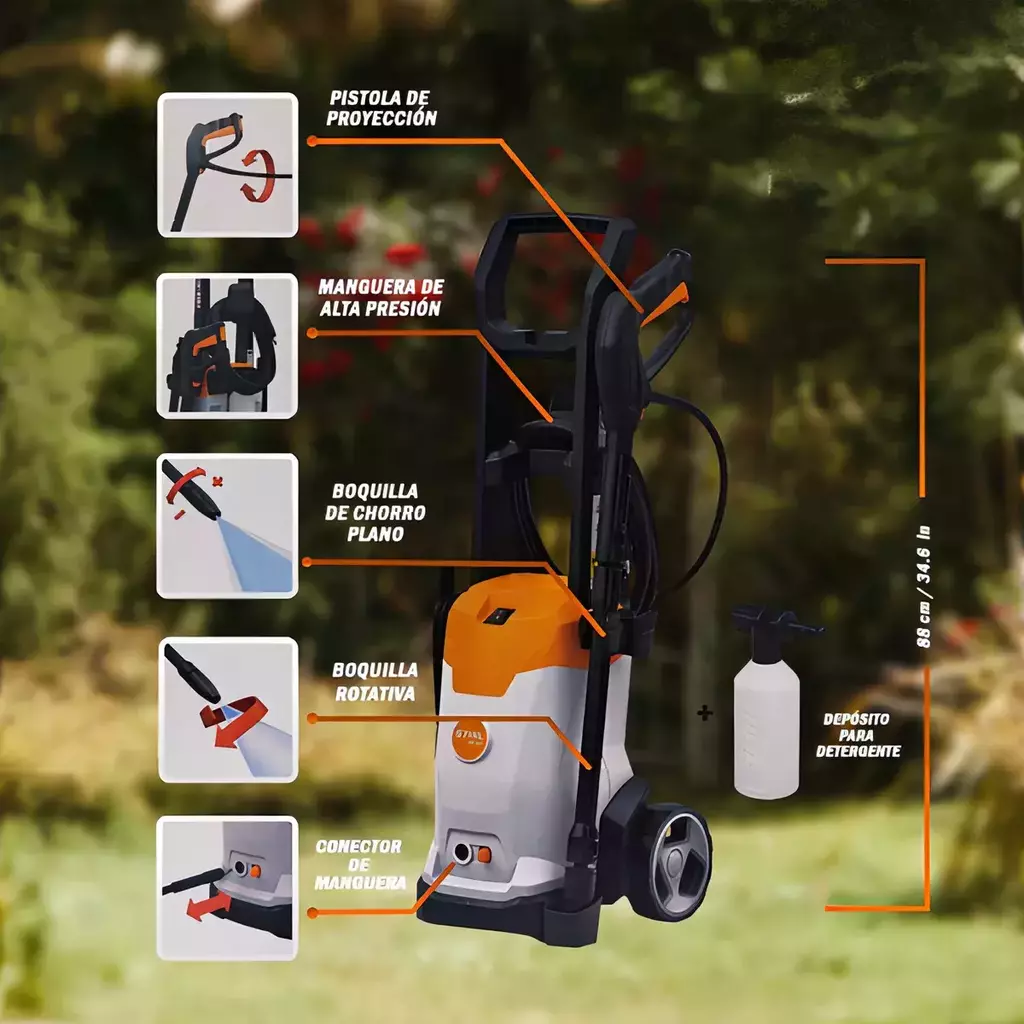 A Lavadora de Alta Pressão elétrica RE 90.0 da STIHL é uma ferramenta versátil e eficaz para a limpeza de pátios, carros, móveis de jardim e outras superfícies. Com uma pressão de até 130 bar (dependendo da voltagem), essa lavadora remove sujeira, musgo e resíduos de forma rápida e eficiente. Possui um design compacto e fácil de manusear, além de ser equipada com um motor robusto que oferece desempenho confiável. A lavadora RE 90.0 também inclui um bico ajustável para personalizar a pressão de pulverização de acordo com a tarefa. Mantenha seu espaço limpo e brilhante com a Lavadora de Alta Pressão RE 90.0 da STIHL.